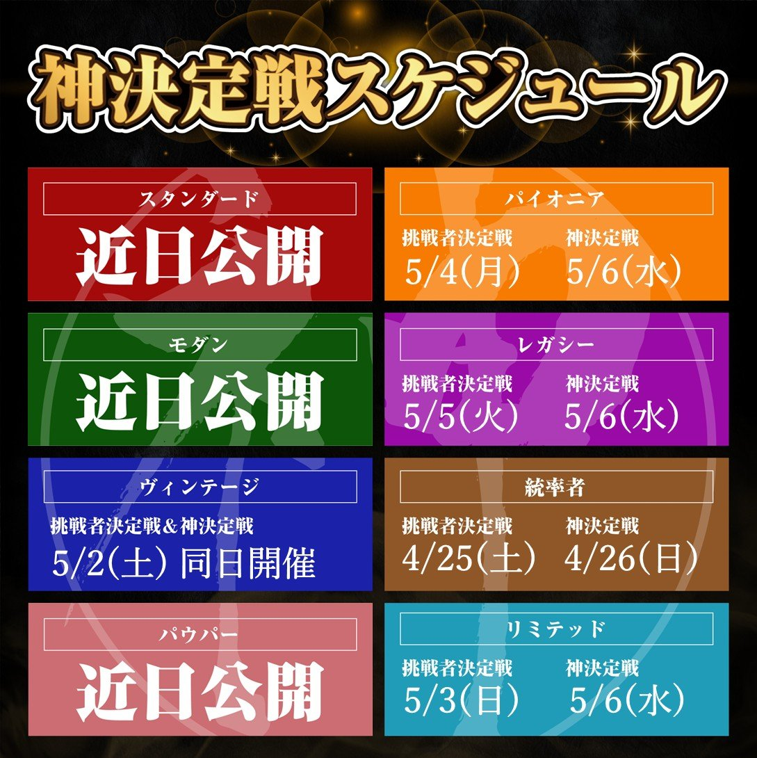 さらに、今週末の『第14期統率者神挑戦者決定戦』を皮切りに、5月のゴールデンウィークは神決定戦づくし!きっと新カードもたくさん使われることでしょう!