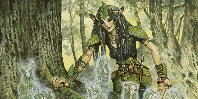 もちろん、単体では脆弱なクリーチャーの組み合わせによって戦うデッキなので、丁寧に1枚1枚が生み出すシナジーを生かして戦っていくことが重要になります。たとえば『ラヴニカへの回帰』で得た《死儀礼のシャーマン》などは顕著な例です。序盤はマナクリーチャーとして活躍し、中盤以降はダメージソースや延命手段として運用できる素晴らしいカードであることは知られていますが、エルフではそれに加えて《クウィリーオン・レインジャー》や《ワイアウッドの共生虫》などアンタップ生物との組み合わせが強力です。